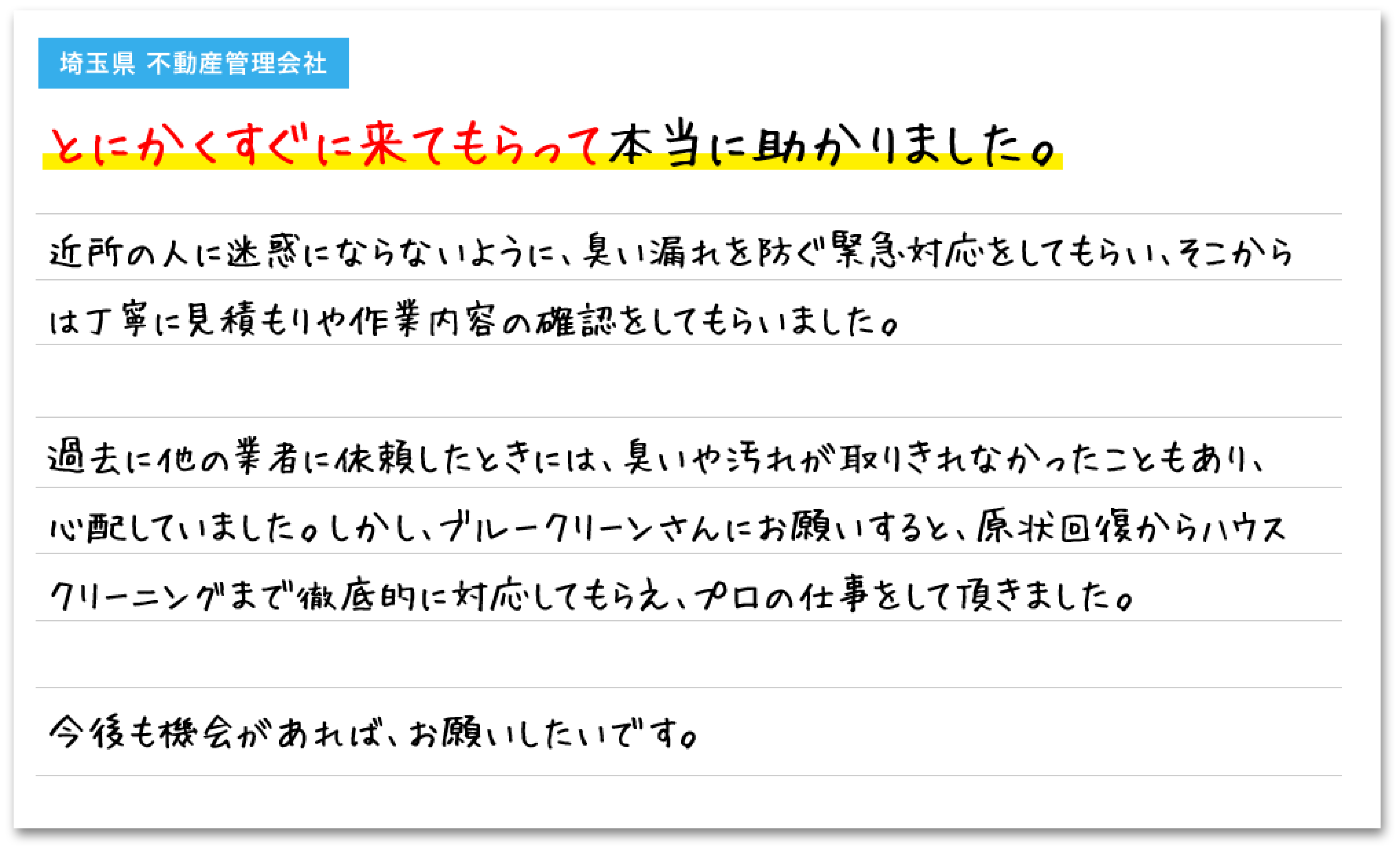 内訳の明確な見積書はもちろん、施工前後の写真報告書や、科学的な測定データ(ATP計測等)を提供可能です。